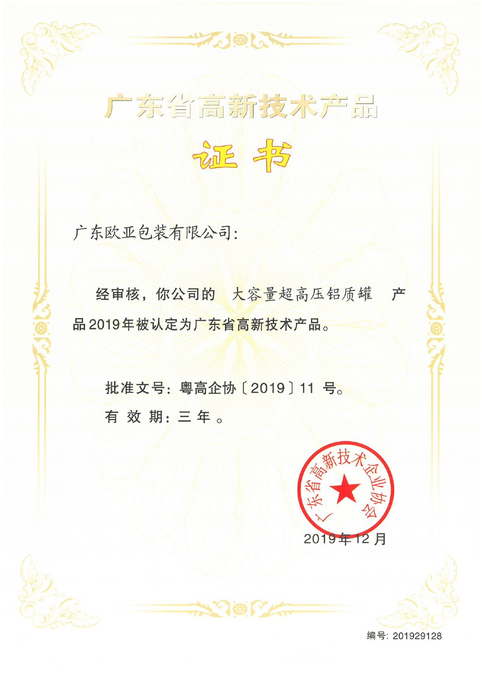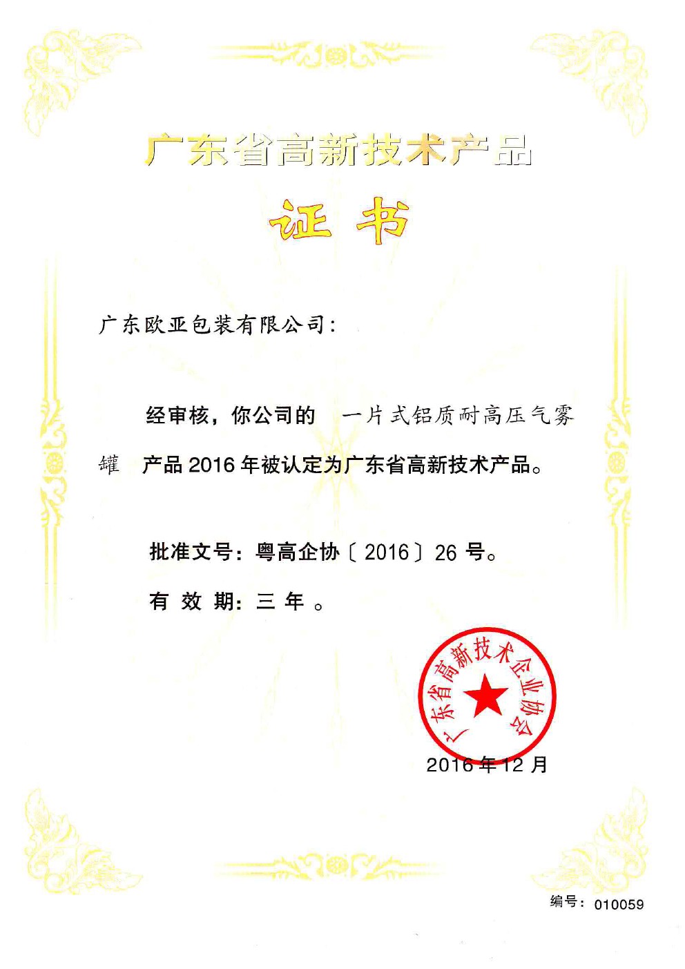 高新技术产品证书